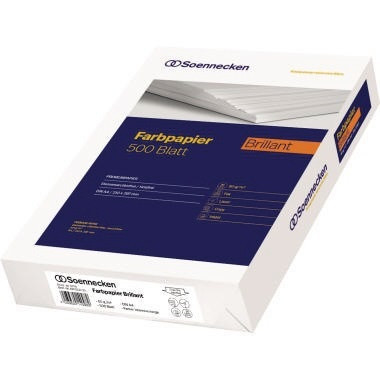 Soennecken Farbpapier Brillant - wählen Sie aus verschiedenen hellen oder intensiven Farben Ihre Favoriten. Auf farbigem Papier sind Ihre Mitteilungen besonders aufmerksamkeitsstark. Die Farbpapiere sind bestens geeignet für den Duplex-Druck. Die Papiere werden entsprechend den DIN Normen ISO 9001, 14001 sowie OHSAS 18001 produziert. · beidseitig bedruckbar: Ja · PEFC: Ja · Papierformat: DIN A4 · Nordischer Schwan: Nein · Grammatur: 80 g/m² · Forest Stewardship Council (FSC): Nein · Farbe: intensivorange · Blauer Engel: Nein · Anzahl der Blätter je Packung: 500 Bl./Pack. · Verwendung für Druck- oder Schreibgerät: Laserdrucker, Inkjetdrucker, Kopierer, Faxgeräte · EU Ecolabel: Nein