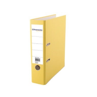 Einband aus farbigem, strapazierfähigem und wischfestem Spezialpapierbezug. · Typbezeichnung der Ordnermechanik: Präzisionsmechanik · Material der Kaschierung innen: Papier · Verwendung für Papierformat: DIN A4 · Sichttasche am Rücken vorhanden: Nein · Schlitze vorhanden: Ja · Rückenbreite: 80 mm · Kantenschutz vorhanden: Ja · Griffloch vorhanden: Ja · Farbe: gelb · Deckblatt vorhanden: Nein · Blattniederhalter vorhanden: Ja · Ausführung der Ablagemechanik: 2 Bügel · Material der Kaschierung außen: Papier · Werkstoff: Pappe