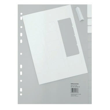 Einfaches Beschriften und Auswechseln der Beschriftungsschilder in den Fenstertaben. · Höhe: 297 mm · Beschriftungsschild auswechselbar: Ja · Werkstoff: Polypropylen · Verwendung für Papierformat: DIN A4 · Stärke: 0,12 mm · Maße: 22,5 x 29,7 cm (B x H) · Breite: 225 mm · Anzahl der Registerblätter: 10 Registerblätter · Ausführung des Registers: volle Höhe · Ausführung der Tabe: blanko · Ausführung der Lochung: 11fach Lochung · Farbe: grau