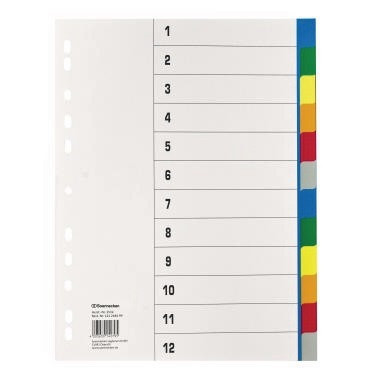 Mit weißen Registerdeckblatt aus Papier. Deckblatt mit Zahlen vorbedruckt. · Deckblatt vorhanden: Ja · Zertifikat/Zulassung: Blauer Engel · Werkstoff: Polypropylen · Verwendung für Papierformat: DIN A4 · Stärke: 0,115 mm · Maße: 22,5 x 29,7 cm (B x H) · Farbe: farbig sortiert · Breite: 225 mm · Blauer Engel: Ja · Ausführung des Registers: volle Höhe · Ausführung der Tabe: blanko · Ausführung der Lochung: 11fach Lochung · Anzahl der Registerblätter: 12 Registerblätter · Höhe: 297 mm