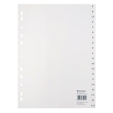 Die Register sind reißfest und umweltfreundlich. · Ausführung der Lochung: 11fach Lochung · Werkstoff: Polypropylen · Verwendung für Papierformat: DIN A4 · Stärke: 0,12 mm · Maße: 22,5 x 29,7 cm (B x H) · Ausführung der Tabe: A-Z · Ausführung des Registers: volle Höhe · Anzahl der Registerblätter: 20 Registerblätter · Farbe: weiß