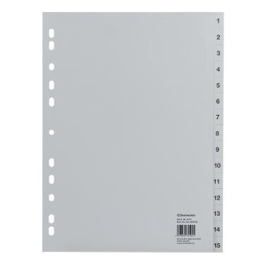 2 Abläufe. · Ausführung des Registers: volle Höhe · Verwendung für Papierformat: DIN A4 · Stärke: 0,115 mm · Maße: 22,5 x 29,7 cm (B x H) · Werkstoff: Polypropylen · Höhe: 297 mm · Ausführung der Tabe: Jan 15 · Ausführung der Lochung: 11fach Lochung · Anzahl der Registerblätter: 15 Registerblätter · Farbe: grau · Breite: 225 mm