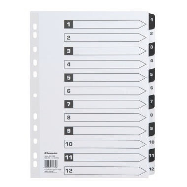 Mit mylar-verstärkte Taben. · Farbe: schwarz/weiß · Werkstoff: Karton · Verwendung für Papierformat: DIN A4 · Maße: 22,3 x 29,7 cm (B x H) · Grammatur: 170 g/m² · Ausführung des Registers: volle Höhe · Ausführung der Tabe: 01. Dez · Anzahl der Registerblätter: 12 Registerblätter · Ausführung der Lochung: 11fach Lochung · Deckblatt vorhanden: Ja