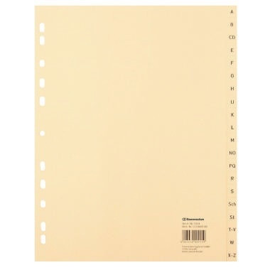 Die umweltbewusste Alternative zu Kunststoffregistern. · Blauer Engel: Ja · Zertifikat/Zulassung: Blauer Engel · Werkstoff: Tauenpapier · Verwendung für Papierformat: DIN A4 · Maße: 24 x 29,7 cm (B x H) · Farbe: chamois · Ausführung des Registers: volle Höhe · Ausführung der Tabe: A-Z · Ausführung der Lochung: 11fach Lochung · Anzahl der Registerblätter: 20 Registerblätter · Grammatur: 160 g/m²
