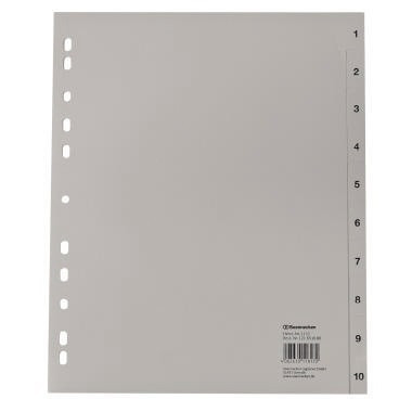 2 Abläufe. · Breite: 225 mm · Werkstoff: Polypropylen · Verwendung für Papierformat: DIN A4, Überbreite · Stärke: 0,115 mm · Maße: 24,5 x 29,7 cm (B x H) · Farbe: grau · Ausführung des Registers: volle Höhe · Ausführung der Tabe: 01. Okt · Ausführung der Lochung: 11fach Lochung · Anzahl der Registerblätter: 10 Registerblätter · Höhe: 297 mm