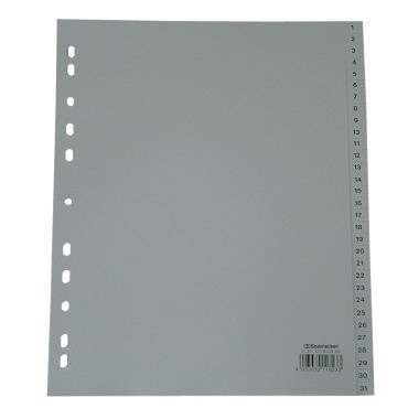 2 Abläufe. · Breite: 225 mm · Verwendung für Papierformat: DIN A4, Überbreite · Stärke: 0,115 mm · Maße: 24,5 x 29,7 cm (B x H) · Werkstoff: Polypropylen · Ausführung des Registers: volle Höhe · Ausführung der Tabe: Jan 31 · Ausführung der Lochung: 11fach Lochung · Anzahl der Registerblätter: 31 Registerblätter · Höhe: 297 mm · Farbe: grau