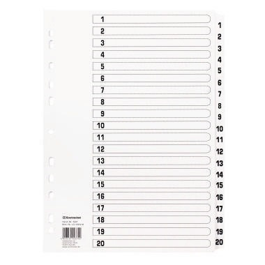 Mit mylar-verstärkten Taben. · Ausführung des Registers: volle Höhe · Werkstoff: Karton · Verwendung für Papierformat: DIN A4 · Maße: 22,3 x 29,7 cm (B x H) · Grammatur: 170 g/m² · Deckblatt vorhanden: Ja · Ausführung der Tabe: Jan 20 · Ausführung der Lochung: 11fach Lochung · Anzahl der Registerblätter: 20 Registerblätter · Farbe: weiß