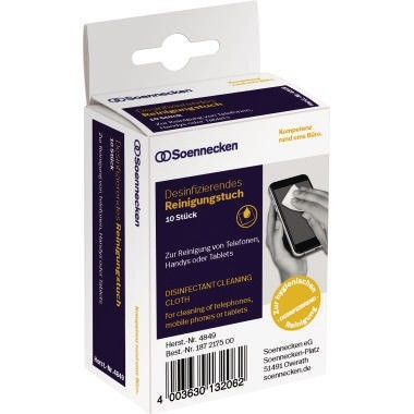 Zur hygienischen Reinigung Ihrer Büroarbeitsgeräte. Speziell gegen Viren, Bakterien und Pilze. Desinfizierende Reinigungstücher, einzeln verpackt, bestens für unterwegs geeignet. · Verwendung für Produkt: Tastaturen, Telefone, Handys, Oberflächen · Beschreibung der Besonderheiten: desinfizierende Reinigungstücher · Biozid-Produkt: Ja · Packungsmenge: 10 St./Pack.