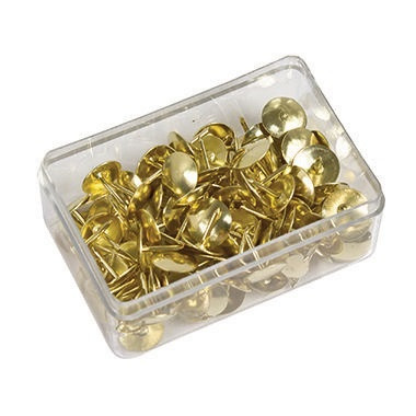 Soennecken Reißnagel 9,5mm überkapselt Metall farbig sortiert 100 St./Pack. · Werkstoff: Metall · Ausführung des Gebindes: Kunststoffdose · Ausführung des Inhalts (Packung): 100 St./Pack. · Durchmesser des Kopfes: 7 mm · Farbe: messing · Inhalt: 100 St./Pack. ml · Maße: 7 x 7 mm (Ø x L) · überkapselt: Ja