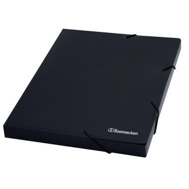 Leichte und strapazierfähige Sammelbox zum Aufbewahren und Mitnehmen von Dokumenten und losem Schriftgut. Mit Gummizugverschluss über Eck zum sicheren Verschließen. · max. Anzahl der Blätter: 250 Bl. (80 g/m²) · Verwendung für Papierformat: DIN A4 · Werkstoff: Polypropylen · max. Füllhöhe an Papier: 25 mm · Höhe: 312 mm · Farbe: schwarz · Breite: 245 mm · Art des Verschlusses: Gummizugverschluss · Maße: 24,5 x 31,2 cm (B x H) · Stärke: 0,67 mm