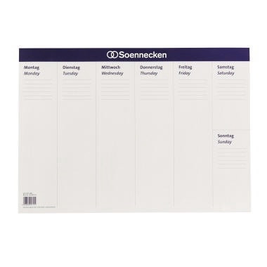 Unterkante verleimt auf Karton, Ecken an der Oberkante rechts und links verleimt. Wochentagedruck auf jedem Blatt, zeitlos ohne Kalendarium. · Höhe: 400 mm · Ausführung des Papiertyps: holzfrei · Werkstoff: Papier · Maße: 58,9 x 41,9 cm (B x H) · Kalender vorhanden: Nein · Folienauflage vorhanden: Nein · Anzahl der Blätter: 20 Bl. · Breite: 590 mm · Farbe: weiß/blau · Grammatur: 80 g/m²