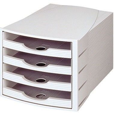 Für eine geordnete und übersichtliche Ablage. Attraktiv und zugleich stabil sorgen sie für Platz auf Ihrem Schreibtisch oder im Schrank. · Format der Schubladen: 4 x breit · Griffmulde vorhanden: Ja · Werkstoff: Polystyrol · Verwendung für Papierformat: DIN A4 · Tiefe: 365 mm · stapelbar: Ja · rutschfest: Ja · Maße: 29 x 23,3 x 36,5 cm (B x H x T) · Höhe: 233 mm · Ausführung der Lieferzusammenstellung: inkl. Gummifüßchen · Griffloch vorhanden: Nein · Anzahl der Schubfächer: 4 Schubfächer · Ausführung des Öffnungszustandes: offen · Auszugsperre vorhanden: Ja · Beschriftungsfeld vorhanden: Ja · Breite: 290 mm · Farbe der Schublade: lichtgrau · Gehäusefarbe: lichtgrau