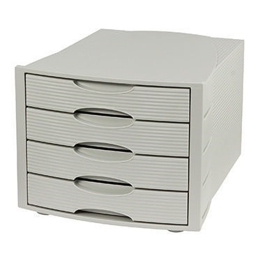 Für eine geordnete und übersichtliche Ablage. Attraktiv und zugleich stabil sorgen sie für Platz auf Ihrem Schreibtisch oder im Schrank. · Höhe: 233 mm · Maße: 29 x 23,3 x 36,5 cm (B x H x T) · rutschfest: Ja · stapelbar: Ja · Tiefe: 365 mm · Griffmulde vorhanden: Ja · Werkstoff: Polystyrol · Format der Schubladen: 4 x breit · Verwendung für Papierformat: DIN A4 · Ausführung der Lieferzusammenstellung: inkl. Gummifüßchen · Gehäusefarbe: lichtgrau · Farbe der Schublade: lichtgrau · Breite: 290 mm · Beschriftungsfeld vorhanden: Ja · Auszugsperre vorhanden: Ja · Ausführung des Öffnungszustandes: geschlossen · Anzahl der Schubfächer: 4 Schubfächer · Griffloch vorhanden: Nein