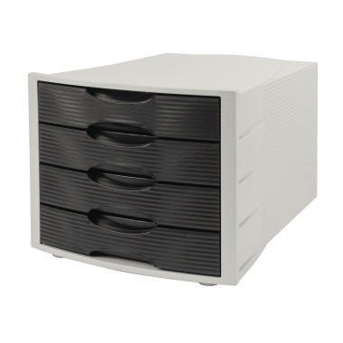Für eine geordnete und übersichtliche Ablage. Attraktiv und zugleich stabil sorgen sie für Platz auf Ihrem Schreibtisch oder im Schrank. · Griffmulde vorhanden: Ja · Werkstoff: Polystyrol · Maße: 29 x 23,3 x 36,5 cm (B x H x T) · Höhe: 233 mm · stapelbar: Ja · Tiefe: 365 mm · Griffloch vorhanden: Nein · Verwendung für Papierformat: DIN A4 · Ausführung der Lieferzusammenstellung: inkl. Gummifüßchen · Gehäusefarbe: lichtgrau · Anzahl der Schubfächer: 4 Schubfächer · Ausführung des Öffnungszustandes: geschlossen · Auszugsperre vorhanden: Ja · Beschriftungsfeld vorhanden: Ja · Breite: 290 mm · Farbe der Schublade: schwarz · Format der Schubladen: 4 x breit · rutschfest: Ja