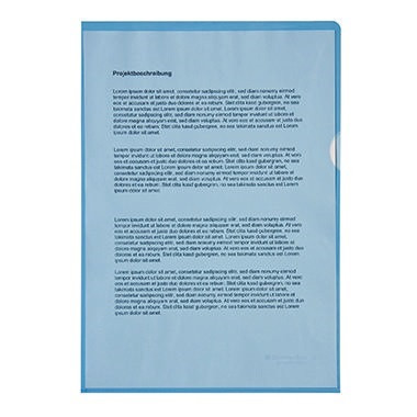 Qualitativ hochwertige und stabile Aktenhüllen. Optimaler Schutz für Ihre Dokumente. · Farbe: blau · Verwendung für Papierformat: DIN A4 · Werkstoff: Polypropylen · Greifausschnitt vorhanden: Ja · Dicke der Folie: 0,15 mm · Ausführung der Oberflächenbeschaffenheit: glatt · antistatisch vorhanden: Ja · Anordnung der Lage (Zugriffsseite): oben, rechts offen · Packungsmenge: 50 St./Pack. · dokumentenecht: Ja