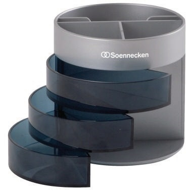 Formschöner und praktischer Stifteköcher. · Anzahl der Fächer: 5 Fächer · Durchmesser: 100 mm · Farbe: silber/blau transluzent · Höhe: 100 mm · Maße: 10 x 10 cm (Ø x H) · Werkstoff: Kunststoff