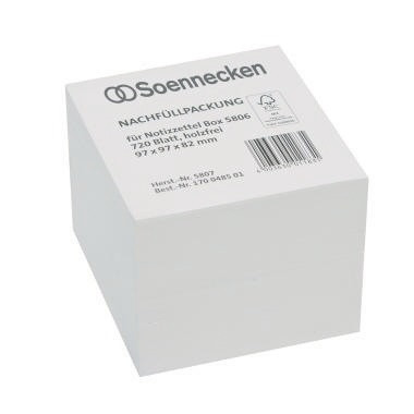 Soennecken Zettelboxeinlage 9,7 x 9,7 cm (B x H) 80g/m² holzfrei weiß 720 Bl. · Maße: 9,7 x 9,7 cm (B x H) · Grammatur: 80 g/m² · Forest Stewardship Council (FSC): Ja · Farbe: weiß · Anzahl der Blätter: 720 Bl. · Ausführung des Papiertyps: holzfrei