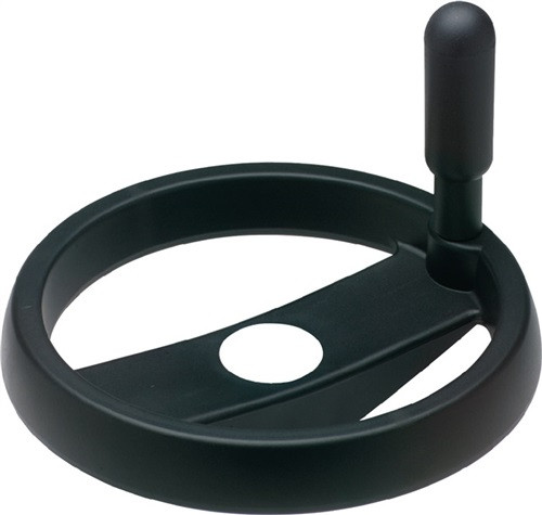 elegantes Design unter Berücksichtigung ergonomischer Anforderungen ist bei Speichenhandrädern GN 522 verwirklicht · Kunststoff Thermoplast (Polypropylen PP) · verstärkt, schlagfest · temperaturbeständig bis 80 °C · schwarz, matt · Nabenbuchse: Stahl, brüniert · Gewindebuchse: Messing · Weitere technische Eigenschaften d4: 17mm • b: 20mm • l2: 37mm • l1: 17mm • d1: 100mm • d5: 25mm • d2: 10mm • d3: 18mm