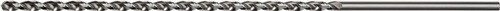 HSS-Co · DIN 1869 · Typ TS · Spitzenwinkel 130 ° · profilgeschliffen · mit Zylinderschaft · rechtsschneidend mit Kreuzanschliff · überlange Ausführung · Spezialbohrer für extrem tiefe Bohrungen, mit ausgeprägter Wärmehärtebeständigkeit und mit großem Spanraum · zum Bohren unter erschwerten Bedingungen, bei hoher thermischer Beanspruchung · zur Bearbeitung von Stählen und Stahlguss hoher Festigkeit, Grauguss, Temperguss, Sphäroguss usw. · Weitere technische Eigenschaften Vorschub in Stahl bis 1000 N: 0,12mm/U • Baulänge: Reihe 3