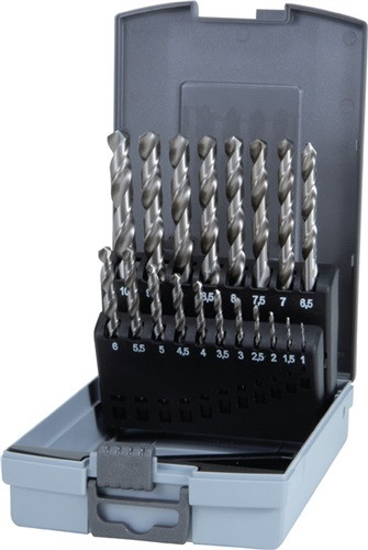 HSS · DIN 338 · Typ N · profilgeschliffen · rechtsschneidend · mit Zylinderschaft · Hochleistungsbohrer für alle normalen Bohrarbeiten in Stahl und Guss · in Kunststoffkassette · Weitere technische Eigenschaften Inhalt: 19 teilig • steigend um: 0,5mm • Qualität: profilgeschliffen • Verpackung: Kunststoffkassette