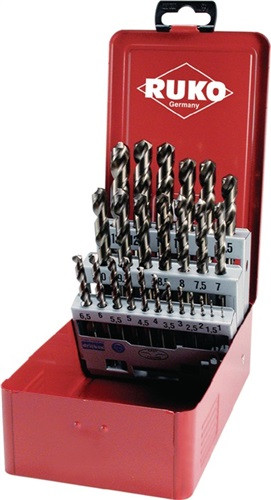 DIN 338 · profilgeschliffen · rechtsschneidend · mit Zylinderschaft · Hochleistungsbohrer für alle normalen Bohrarbeiten in Stahl und Guss · in Metallkassette · Weitere technische Eigenschaften Inhalt: 25 teilig • steigend um: 0,5mm • Qualität: profilgeschliffen • Verpackung: Metallkassette