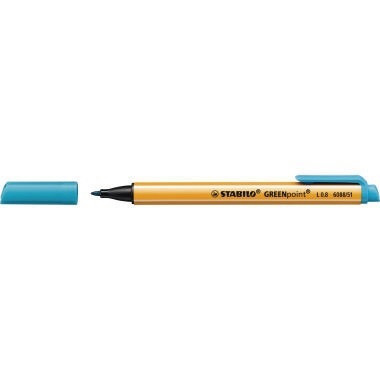 Für Schüler, Lehrer, Eltern und Büroangestellte mit hohem Umweltbewusstsein. Hergestellt aus 87 % recyceltem Material. Robuste breite Spitze - für sanftes Schreiben, ausdrucksstarkes Hervorheben und farbintensives Strukturieren. Handliche Stiftlänge und Clip für mehr Mobilität. Kappe am Stiftende aufsteckbar. · Farbe des Schaftes: orange/weiß · wasserfest: Nein · Strichstärke: 0,8 mm · Schreibfarbe: türkis · Material des Schaftes: Kunststoff, 87 % recyelt · kann einige Tage offen liegen bleiben ohne einzutrocknen: Ja · Farbe der Kappe: türkis · Clip vorhanden: Ja · Bezeichnung der Schreibflüssigkeit: Tinte auf Wasserbasis · auswaschbar: Nein · Ausführung der Spitze: Rundspitze · Material des Clips: Polyoxymethylen, recycelt