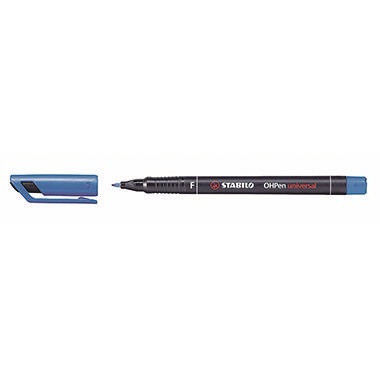 Folienschreiber für alle, die ihre Ideen vor anderen Menschen erläutern möchten. Schreibt auf fast allen glatten Oberflächen. Schwarzer Schaft für permanente Tinte. Bis zu 72 Stunden Austrocknungsschutz ohne Kappe. · geeignet für Schablone: Ja · Material des Clips: Kunststoff · lichtbeständig gegeben: Nein · wasserfest: Ja · Material der Spitze: Faser · nachfüllbar: Nein · schnelltrocknend: Nein · Schreibfarbe: blau · Strichstärke: 0,7 mm · Typbezeichnung der Strichstärke: F · Technik des Tintenspeichers: Kapillarspeicher · Kappe umsteckbar: Ja · Farbe des Schaftes: schwarz · Farbe der Kappe: blau · dokumentenecht: Nein · Clip vorhanden: Ja · Bezeichnung der Schreibflüssigkeit: geruchsarme Tinte auf Alkoholbasis · Ausführung der Spitze: Rundspitze · Ausführung der Griffzone: rutschfest · abwischbar: Nein · kann einige Tage offen liegen bleiben ohne einzutrocknen: Ja
