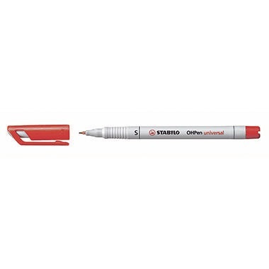 Folienschreiber für alle, die ihre Ideen vor anderen Menschen erläutern möchten. Schreibt auf fast allen glatten Oberflächen. Schwarzer Schaft für permanente Tinte, grauer Schaft für wasserlösliche Tinte. Bis zu 72 Stunden Austrocknungsschutz ohne Kappe. · Typbezeichnung der Strichstärke: S · Material der Spitze: Faser · nachfüllbar: Nein · schnelltrocknend: Nein · Schreibfarbe: rot · Kappe umsteckbar: Ja · Technik des Tintenspeichers: Kapillarspeicher · lichtbeständig gegeben: Nein · wasserfest: Nein · Strichstärke: 0,4 mm · Ausführung der Spitze: Rundspitze · Material des Clips: Kunststoff · kann einige Tage offen liegen bleiben ohne einzutrocknen: Nein · Ausführung der Griffzone: rutschfest · Bezeichnung der Schreibflüssigkeit: geruchsarme Tinte auf Alkoholbasis · Clip vorhanden: Ja · dokumentenecht: Nein · Farbe der Kappe: rot · Farbe des Schaftes: hellgrau · geeignet für Schablone: Ja · abwischbar: Ja