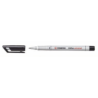 Folienschreiber für alle, die ihre Ideen vor anderen Menschen erläutern möchten. Schreibt auf fast allen glatten Oberflächen. Schwarzer Schaft für permanente Tinte, grauer Schaft für wasserlösliche Tinte. Bis zu 72 Stunden Austrocknungsschutz ohne Kappe. · kann einige Tage offen liegen bleiben ohne einzutrocknen: Nein · Technik des Tintenspeichers: Kapillarspeicher · Strichstärke: 0,7 mm · Schreibfarbe: schwarz · schnelltrocknend: Nein · nachfüllbar: Nein · Material des Clips: Kunststoff · Material der Spitze: Faser · wasserfest: Nein · Typbezeichnung der Strichstärke: F · abwischbar: Ja · geeignet für Schablone: Ja · Farbe des Schaftes: hellgrau · Farbe der Kappe: schwarz · dokumentenecht: Nein · Clip vorhanden: Ja · Bezeichnung der Schreibflüssigkeit: geruchsarme Tinte auf Alkoholbasis · Ausführung der Spitze: Rundspitze · Ausführung der Griffzone: rutschfest · lichtbeständig gegeben: Nein · Kappe umsteckbar: Ja
