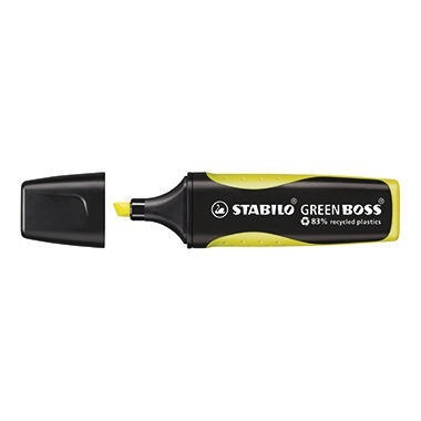 Textmarker aus 83 % recyceltem Material. Für Schüler, Studenten, Lehrer, Eltern und Büroangestellte mit hohem Umweltbewusstsein. STABILO® Anti-Dry-Out Technologie: 4 Stunden Austrocknungsschutz für konzentriertes Arbeiten. · Material des Schaftes: Kunststoff · nachfüllbar: Ja · schattenfrei kopierbar: Nein · Schreibfarbe: gelb · Spitze austauschbar: Nein · Strichstärke: 02. Mai mm · Ausführung der Spitze: Keilspitze · lichtbeständig gegeben: Ja · Technik des Tintenspeichers: Kapillarsystem · inkjet geeignet: Nein · Farbe des Schaftes: schwarz/gelb · Druckmechanik vorhanden: Nein · Clip vorhanden: Nein · Ausführung der Griffzone: rutschfest · Ausführung der Vorschubmechanik: Kappenmodell · Bezeichnung der Schreibflüssigkeit: Tinte auf Wasserbasis · kann einige Tage offen liegen bleiben ohne einzutrocknen: Nein