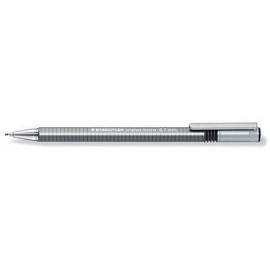 Leichtes und ermüdungsfreies Schreiben. · Ausführung der Griffzone: ergonomisch, dreikant · Mine federnd gelagert: Nein · Technik zur Minenrestreduzierung vorhanden: Ja · Stärke der Mine: 0,7 mm · Spitze voll versenkbar: Ja · Radierer vorhanden: Ja · Radierer auswechselbar: Ja · Mine auswechselbar: Ja · Material des Schaftes: Kunststoff · ISO-Kennzeichnung vorhanden: Nein · Farbe des Schaftes: grau · Clip vorhanden: Ja · Ausführung der Vorschubmechanik: Druckmechanik · Bezeichnung der Härte: B