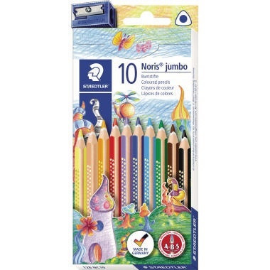 Der weiße Schutzmantel verstärkt den Minenkern und erhöht die Bruchfestigkeit. Ideal für die ersten Schwung- und Malübungen. · Material des Schaftes: Holz · PEFC: Ja · Schaft lackiert: Ja · Schreibfarbe der Mine: gelb, hautfarben, orange, rot, violett, blau, lichtblau, grü · wasservermalbar: Nein · Farbe des Schaftes: gelb, hautfarben, orange, rot, violett, blau, lichtblau, grü · Stärke der Mine: 4 mm · Forest Stewardship Council (FSC): Ja · Durchmesser: 9 mm · Ausführung des Inhalts mit Packung: 10 St./Pack. · Ausführung der Schaftform: ergonomisch, dreikant · Ausführung der Lieferzusammenstellung: inkl. Anspitzer · Ausführung der Farbe: farbig sortiert · Länge: 175 mm