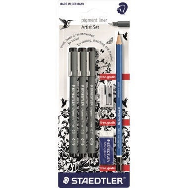 Cap off: kann 18 Stunden offen liegen, ohne einzutrocknen (Prüfklima nach ISO 554). · lichtbeständig gegeben: Ja · Material der Spitze: Metall · Material des Schaftes: Polypropylen · schnelltrocknend: Ja · Schreibfarbe: schwarz · kann einige Tage offen liegen bleiben ohne einzutrocknen: Nein · wasserfest: Ja · Material des Clips: Metall · Strichstärke: 0,3, 0,5, 0,7 mm · Ausführung der Spitze: Rundspitze · geeignet für Schablone: Ja · Mine auswechselbar: Nein · Ausführung der Lieferzusammenstellung: inkl. Bleistift, Spitzer, Radiergummi · Ausführung des Inhalts mit Packung: 3 St./Pack. · Bezeichnung der Schreibflüssigkeit: Pigmenttinte · Clip vorhanden: Ja · dokumentenecht: Ja · Farbe der Kappe: grau · Farbe des Schaftes: grau · Ausführung der Griffzone: rund