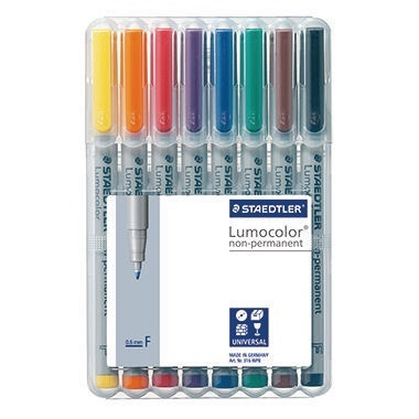 Universalstift für Overhead-Projektion und fast alle Flächen. Höchste Farbbrillanz. · wasserfest: Nein · geeignet für Schablone: Nein · lichtbeständig gegeben: Nein · Material des Clips: Kunststoff · nachfüllbar: Ja · schnelltrocknend: Nein · Schreibfarbe: rot, blau, grün, schwarz, gelb, orange, violett, braun · Typbezeichnung der Strichstärke: F · Farbe des Schaftes: grau · Strichstärke: 0,6 mm · dokumentenecht: Nein · Clip vorhanden: Ja · Bezeichnung der Schreibflüssigkeit: Tinte · Ausführung des Inhalts mit Packung: 8 St./Pack. · Ausführung der Spitze: Rundspitze · Ausführung der Griffzone: rund · Ausführung der Farbe: farbig sortiert · abwischbar: Ja · Farbe der Kappe: gelb, rot, blau, orange, grün, violett, braun, schwarz · kann einige Tage offen liegen bleiben ohne einzutrocknen: Nein