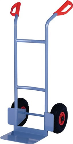 luftbereift · stabile, geschweißte Stahlrohrkonstruktion · Stahlblechschaufel · Radschutz und Sicherheitsgriffe · pulverbeschichtet taubenblau, RAL 5014 · Weitere technische Eigenschaften Radbreite: 85mm • Gesamtbreite: 570mm