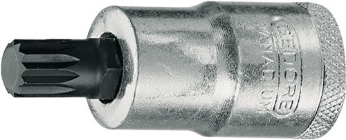 12,5 mm (1/2")-Vierkantantrieb · für Schrauben mit Innenvielzahn-Profil · mit eingepresstem Stift und Kugelfangrille · Einsatz aus CV-Stahl · Klinge aus Vanadium-Sonderstahl · griffig gerändelt · handbetätigt · Spitze manganphosphatiert · DIN 2324 · Weitere technische Eigenschaften Material: Vanadiumstahl