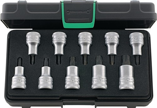 12,5 mm (1/2 ”)-Vierkantantrieb, für Schrauben mit Innen-TORX®-Profil · Inhalt: je 1 Steckschlüssel-Einsatz für Schrauben mit Innen-TORX®-Profil Gr. T 20, T 25, T 27, T 30, T 40 (2x), T 45, T 50, T 55, T 60