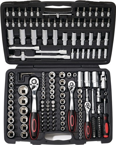 6,3 mm (1/4"), 10,0 mm (3/8") und 12,5 mm (1/2")-Vierkantantrieb · Steckschlüssel-Einsätze und Bedienelemente aus CV-Stahl Lieferung im Kunststoffkoffer · Inhalt: mit 6,3 mm (1/4")-Vierkantantrieb 1 Hebelumschaltknarre mit 2K-Griff, Rückschwenkwinkel 5°, Steckschlüsselauswurf auf Knopfdruck je 1 6-kant-Steckschlüssel-Einsatz 4 - 4,5 - 5 - 5,5 - 6 - 7 - 8 - 9 - 10 - 11 - 12 - 13 - 14 mm je 1 6-kant-Tiefbett-Steckschlüssel-Einsatz 4 - 5 - 6 - 7 - 8 - 9 - 10 mm je 1 Steckschlüssel-Einstaz für Schrauben mit Außen-TORX®-Profil E4, E5, E6, E7, E8 je 1 Steckschlüssel-Einsatz für Schrauben mit Innen-TORX®-Profil Gr. T 8 - T 9 - T 10 - T 15 - T 20 - T 25 - T 27 - T 30 je 1 Steckschlüssel-Einsatz für Schrauben mit Innen-TORX®-Profil mit Sicherungsstift Gr. T 8 - T 9 - T 10 - T 15 - T 20 - T 25 - T 27 - T 30 je 1 Steckschlüssel-Einsatz für Schrauben mit Kreuzschlitz (PH) Gr. 0, 1, 2 je 1 Steckschlüssel-Einsatz für Schrauben mit Kreuzschlitz (PZD) Gr. 0, 1, 2 je 1 Steckschlüssel-Einsatz für Schlitzschrauben 4,0, 4,5, 6,5, 7,0 mm je 1 Steckschlüssel-Einsatz für Schrauben mit Innensechskant-Profil 3, 4, 5, 6 mm je 1 Verlängerung 50 + 100 mm 1 Quergriff mit Gleitstück 110 mm 1 Kardangelenk 1 Handgriff mit Vierkant 6,3 mm (1/4") 1 Adapter 6,3 mm (1/4")-Innenvierkant auf 6,3 mm (1/4")-Innensechskant zum Antrieb von Bits mit einer Knarre mit 10,0 mm (3/8")-Vierkantantrieb 1 Hebelumschaltknarre mit 2-K-Griff, Steckschlüsselauswurf auf Knopfdruck je 1 6-kant-Steckschlüssel-Einsatz 10 - 11 - 12 - 13 - 14 - 15 - 16 - 17 - 18 - 19 mm je 1 6-kant-Tiefbett-Steckschlüssel-Einsatz 10, 11, 12, 13, 14, 15 mm je 1 Steckschlüssel-Einstaz für Schrauben mit Außen-TORX®-Profil E10, E11, E12, E14, E16, E18 1 Verlängerung 125 mm 1 Kardangelenk 1 Zündkerzen-Einsatz 18 mm 1 Adapter 10 mm (3/8″)-Innenvierkant auf 7,94 mm (5/16″)Innensechskant zum Antrieb von Bits mit einer Knarre mit 12,5 mm (1/2")-Vierkantantrieb 1 Hebelumschaltknarre mit 2-K-Griff, Rückschwenkwinkel 5°, Steckschlüsselauswurf auf Knopfdruck je 1 6-kant-Steckschlüssel-Einsatz 10 - 11 - 12 - 13 - 14 - 15 - 16 - 17 - 18 - 19 - 20 - 21 - 22 - 24 - 27 - 30 - 32 mm je 1 6-kant-Tiefbett-Steckschlüssel-Einsatz 16 - 17 - 18 - 19 - 22 mm je 1 Steckschlüssel-Einstaz für Schrauben mit Außen-TORX®-Profil E20, E24 je 1 Zündkerzen-Einsatz 16, 21 mm 1 Kardangelenk je 1 Verlängerung 125 + 250 mm 1 Griff mit Gleitstück 250 mm 1 Vergrößerungsstück 10 mm (3/8") auf 12,5 mm (1/2") 1 Adapter 12,5 mm (1/2")-Innenvierkant auf 7,94 mm (5/16")-Innensechskant zum Antrieb von Bits mit einer Knarre je 1 6-kant Stiftschlüssel SW 1,27 - 1,5 - 2,0 - 2,5 - 3 - 4 - 5 mm je 1 Bit 6,3 mm (1/4") für Schrauben mit Innen-TORX-®Profil Gr. T 5 - T 6 - T 7 je 1 Bit 6,3 mm (1/4") für Schrauben mit Innen-TORX-®Profil und Sicherungsstift Gr. T 7 - T 10 - T 15 - T 20 - T 25 - T 27 - T 30 - T 40 - T 45 je 1 Bit 7,94 mm (5/16") für Schlitzschrauben 8 - 10 - 12 mm je 1 Bit 7,94 mm (5/16") für Schauben mit Kreuzschlitz (PH) Gr. 3, 4 je 1 Bit 7,94 mm (5/16") für Schrauben mit Kreuzschlitz (PZD) Gr. 3, 4 je 1 Bit 7,94 mm (5/16") für Schrauben mit Innen-TORX®-Profil Gr. T 40 - T 45 - T 50 - T 55 - T 60 - T 70 je 1 Bit 7,94 mm (5/16") für Schrauben mit Innen-TORX®-Profil und Sicherungsstift Gr. T 40 - T 45 - T 50 - T 55 - T 60 - T 70 je 1 Bit 6,3 mm (1/4") für Schrauben mit Spline-Profil M 5 - M 6 - M 8 je 1 Bit 6,3 mm (1/4") für Schrauben mit Ribe-Profil RM 5 - RM 6 - RM 7 - RM 8 - RM 9 je 1 Bit 8 mm ((5/16") für Schrauben mit Innensechskant-Profil Gr. 7 - 8 - 10 -12 -14 mm · Weitere technische Eigenschaften Antrieb: 1/4-3/8-1/2″ • Rückschwenkwinkel: 5° • Material: CV-Stahl