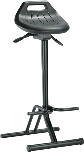 nach DIN 68877 · standfest und hoch belastbar · Sitzhöhenverstellung durch Gasfeder · Sitzfläche aus pflegeleichtem Integralschaum , Metallteile epoxydharzbeschichtet, Farbe schwarz · nach vorn um 13° neigungsverstellbar und um 360° drehbar · mit klappbarer Fußablage