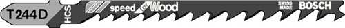 aus HCS-Stahl · zum Einsatz in weichen Materialien wie Holz, Holzfaserplatten, Kunststoffe etc. · passend für Stichsägen der Fabrikate Bosch, DeWalt, Festool, Flex, Makita, Metabo, Milwaukee, AEG · Weitere technische Eigenschaften St. je Karte: 5 • St. je Pack: 5 • entspricht Nr.: Bosch T 244 D • Material: HCS
