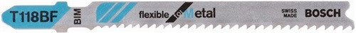 aus Bi-Metall · gefräst · zum Einsatz in härteren Materialien wie Metall, Aluminium und Buntmetall · passend für Stichsägen der Fabrikate Bosch, DeWalt, Festool, Flex, Makita, Metabo · Weitere technische Eigenschaften St. je Karte: 5 • entspricht Nr.: Bosch T 118 BF • Material: Bi-Metall