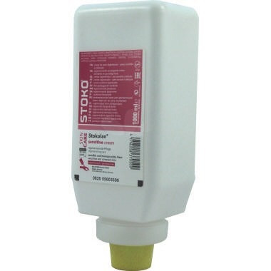 Deb-STOKO Stokolan sensitive cream, Pflegecreme für Hände und Gesicht · Ausführung des Gebindes: Kunststoffflasche · Inhalt: 1 l