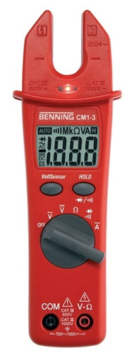 mit Digitalanzeige · gabelförmiger Stromzangenkopf · mit 3½-stelliger LCD-Anzeige (2000 Punkte) · mit Batterie-Unterspannungsanzeige · Volt-Sensor zur berührungslosen Erkennung der Phasenspannung (optisch/akustisch) · lokalisiert Unterbrechungen z. B. in offenliegenden Leitungen, Kabeltrommeln · mit integriertem Messwertspeicher · Durchgangs- und Diodenprüfung · einpolige Phasenprüfung · Zangenöffnung max. 16 mm · CAT IV 600 V, CAT III 1000 V Messbereiche: Gleichspannung: 0,1 V - 1000 V, Wechselspannung: 0,1 V - 750 V, Wechselstrom: 0,1 A - 200 A, Widerstand: 0,1 Ω - 20 MΩ