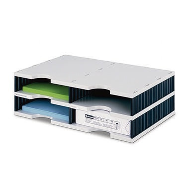 Stabile und flexible Papier- und Dokumentenablage. Vielfältiger Einsatz - verwendbar freistehend auf dem Tisch, Regalen und Schränken oder auch als kleine Drucker- oder Faxstation. Jederzeit erweiterbar durch einfache Steckmontage. · Breite: 485 mm · Werkstoff: Polystyrol · Verwendung für Papierformat: DIN C4 · Tiefe: 331 mm · Maße: 48,5 x 15,3 x 33,1 cm (B x H x T) · Höhe: 153 mm · Farbe: grau/schwarz · Anzahl der Fächer: 4 Fächer · Höhe des Fachs: 57 mm