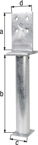 mit Steg · Material: Stahl roh · Oberfläche: feuerverzinkt · zum Einbetonieren · Weitere technische Eigenschaften Oberfläche: feuerverzinkt • Maß c: 80mm • Maß d: 90mm • Material: Stahl roh • Maß a: 130mm • Maß b: 500mm