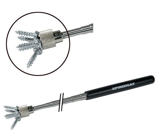 ausziehbarer Teleskopschaft · mit starkem Dauermagnet · zum Erreichen und Heben magnetischer Kleinteile an schwer zugänglichen Stellen