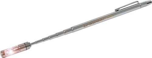 teleskopisch ausziehbar · mit starkem Magnet-Kopf zum Aufheben von heruntergefallenen Teilen wie Schrauben o.ä. · integrierte Düseneinstellnadel (durch Schutzkappe gesichert) · der ausgezogene Teleskopstab zeigt die Strahlrichtung der Düse an · durch die integrierte LED-Beleuchtung wird das Auffinden heruntergefallener Kleinteile auch in dunkler Umgebung (z.B. Maschinen) erleichtert
