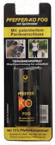 enthält 11 % OC, hochkonzentriertes, natürliches Pfefferkonzentrat Oleoresin Capsicum · bedeutet auch für den bissigsten Vierbeiner den technischen KO · zum Schutz beim Spaziergang, joggen oder beim Bummeln · unterliegt keiner Altersbeschränkung · einfach in der Handhabung und sehr effektiv in der Wirkung · durch den Gürtelclip einfach zu befestigen · PFEFFER-KO bietet als FOG (Sprühnebel) eine hohe Treffsicherheit bis zu 4 Metern · bitte dringend beachten, dass PFEFFER-KO ein Tierabwehrspray ist. Es wirkt ebenso überzeugend gegen Menschen, ist aber in Deutschland dafür nicht zugelassen! Pfefferspray vorsichtig verwenden. Vor Gebrauch stets Etikett und Produktinformation lesen. · Weitere technische Eigenschaften Inhalt: 40ml • Ausführung: mit Gürtelclip • Gebinde: Spraydose