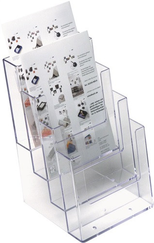 freistehend · Kunststoff glasklar · 4 Fächer für Prospekte im Format A5 hoch · Weitere technische Eigenschaften Ausführung: freistehend