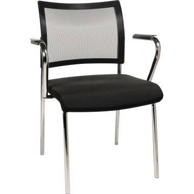 Rückenlehne mit Netzbespannung. · Sitzform: Muldensitz · Werkstoff des Gestells: Stahl · max. Sitzhöhe: 43 cm · max. Gewicht des Nutzers: 110 kg · min. Sitzhöhe: 43 cm · Sitzpolsterung vorhanden: Ja · Stapelkapazität: 2 Stühle · Tiefe der Sitzfläche: 45 cm · Werkstoff der Sitzfläche: Polypropylen · Garantie gewährt: Ja · Masse (Gewicht): 7,6 kg · Werkstoff der Rückenlehne: Netzstoff · Farbe der Armlehne: chrom · Höhe der Rückenlehne: 32 cm · Gleiter vorhanden: Ja · Ausführung der Lieferzusammenstellung: inkl. 2 Armlehnen · Breite des Sitzes: 48 cm · Farbe der Rückenlehne: schwarz · Farbe der Sitzfläche: schwarz · Form des Gestells: 4-Fuß · Garantiedauer: 3 Jahre · Griffloch vorhanden: Nein · Höhe der Rückenlehne ab Sitz: 39 cm · Bauform der Armlehne: Ringarmlehne